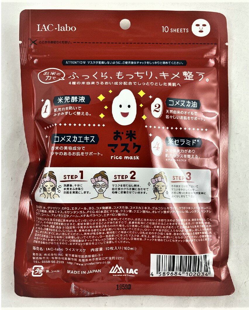お米のマスク、分厚さちょうど良くて好きなんだけど、目の穴が私には中心寄りなんだか小さいんだかで合わなくて毎回目尻側ハサミ入れないと目に液が染みてきちゃうのが難点。