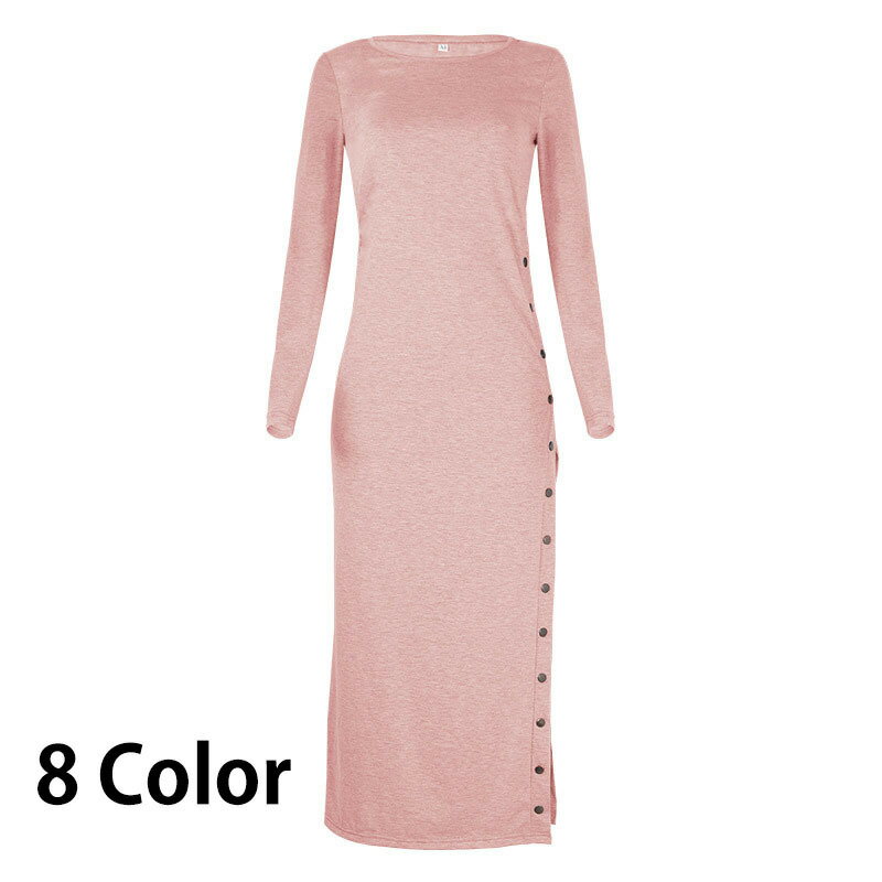 送料無料 ワンピース 長袖 マキシ丈 ロング丈 ラウンドネック サイドスリット レディース タイト セクシー シンプル 無地 単色 ソリッドカラー 女性用 婦人用 S M L XL 2XL