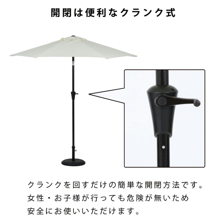 ・クランクを回して傘を開閉できるので、取扱いが簡単です。