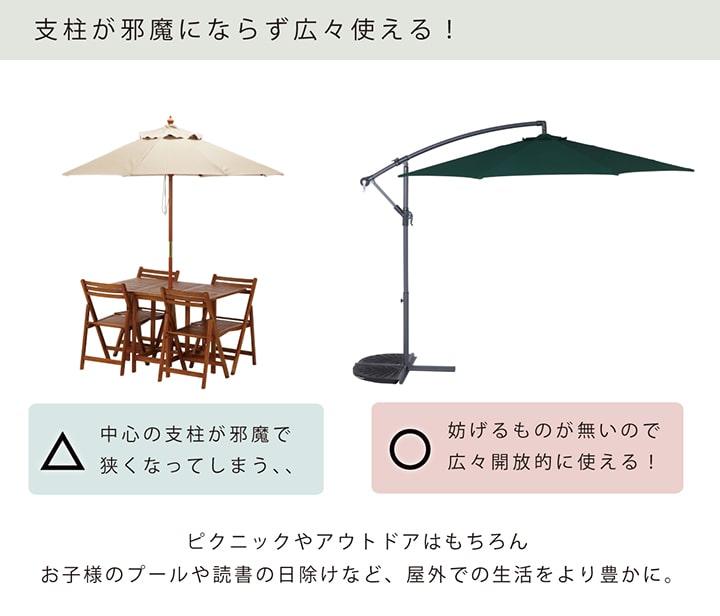 関連商品 ■ ハンギングパラソル 300cm ■ ハンギングパラソル用ベース 12kg ■ 半円パラソル ■ 半円パラソルベース ■ 木製パラソル210cm ■ 木製パラソル270cm ■ アルミパラソル240cm ■ アルミパラソル270cm ■ パラソルベース 11kg ■ パラソルベース 15kg ■ パラソルベース 22kg
